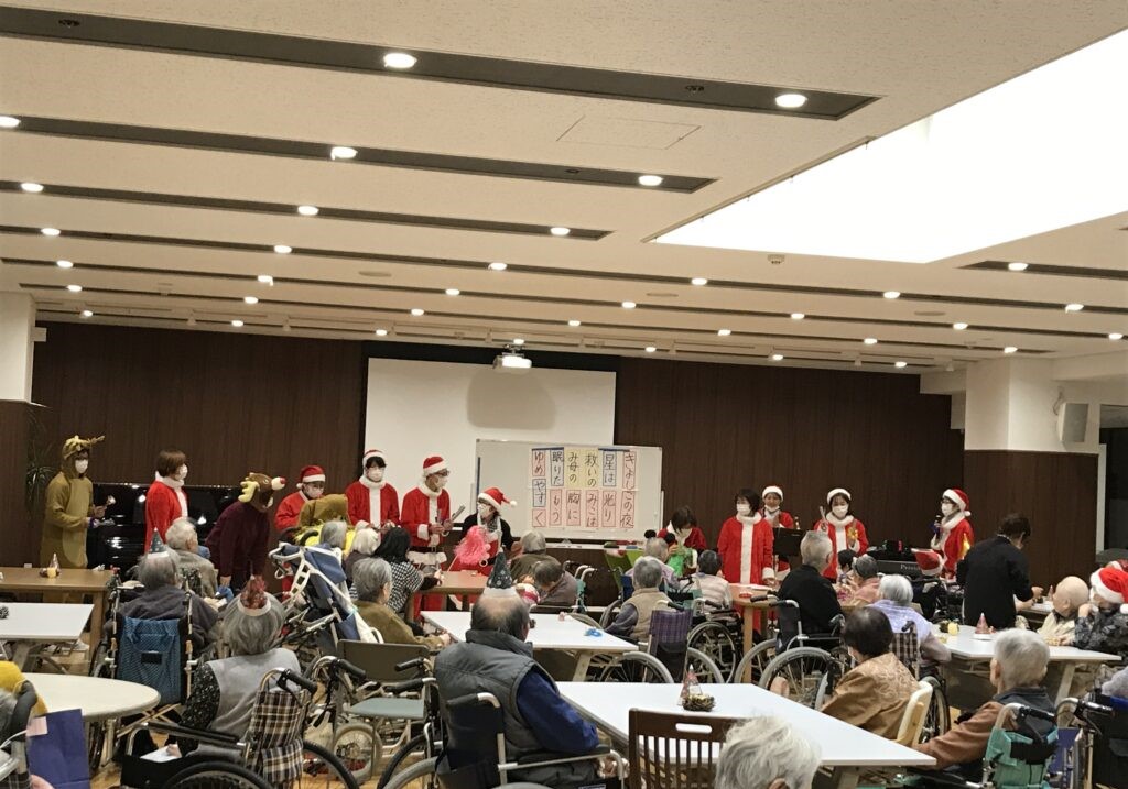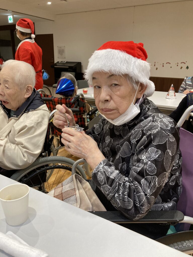 入居者の方々もサンタの帽子や可愛いカチューシャを付けてクリスマスムード一色なホールでした!!