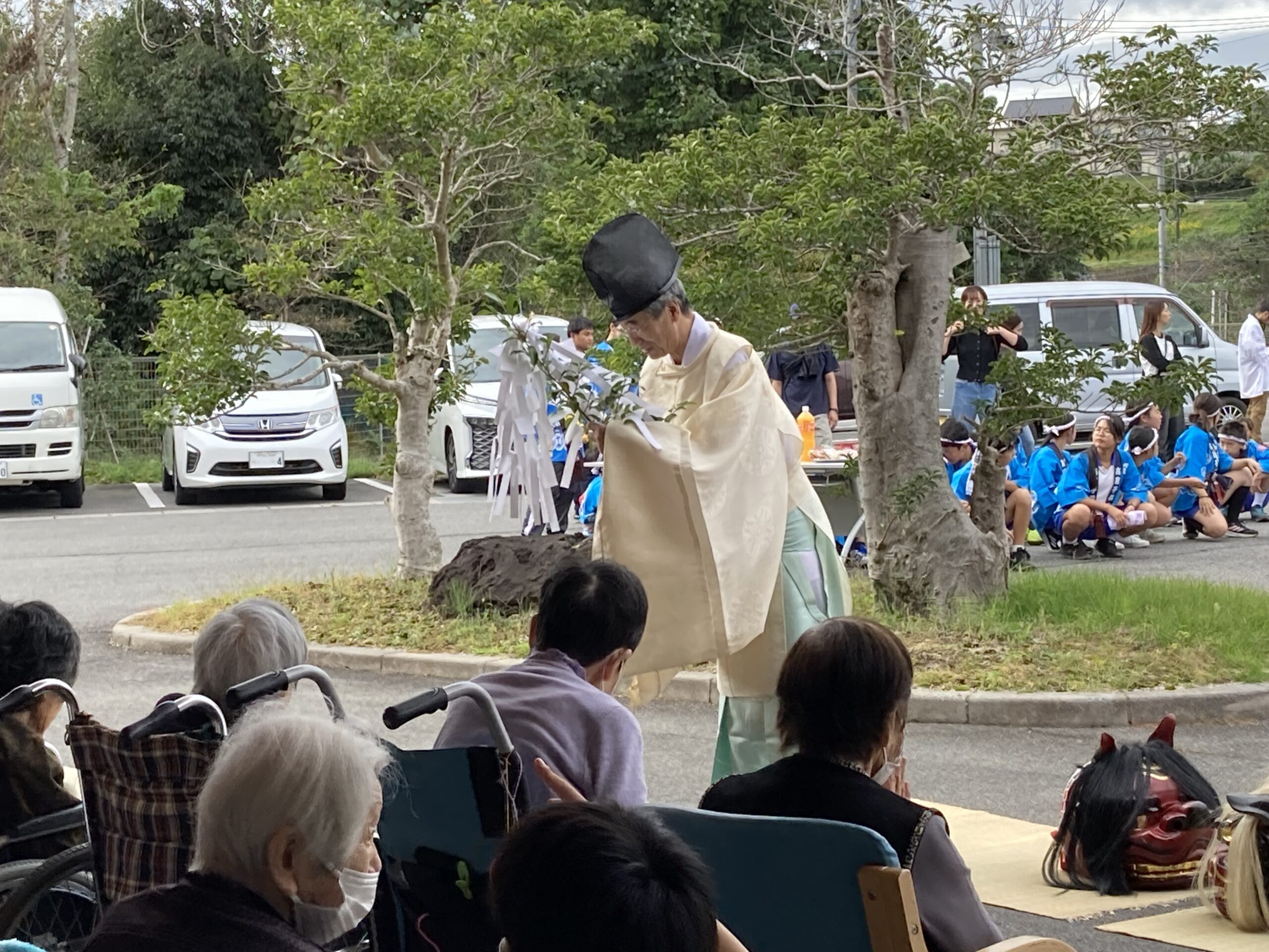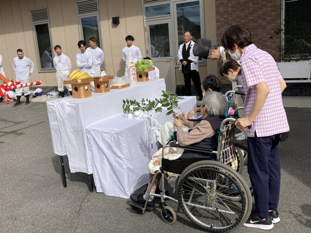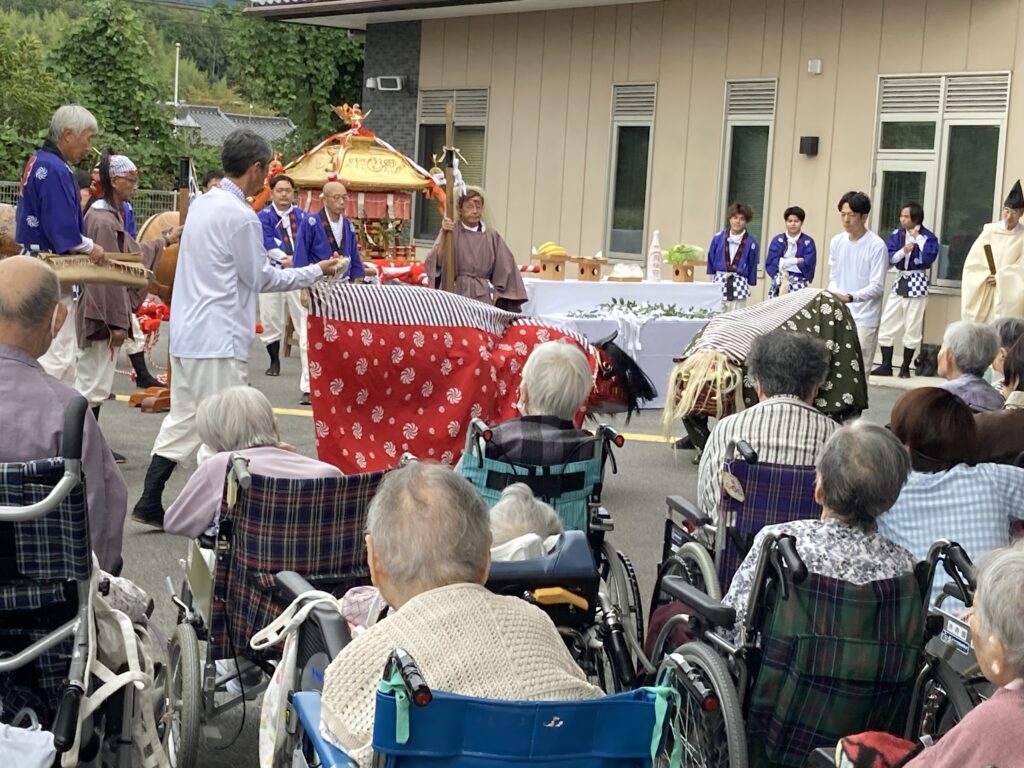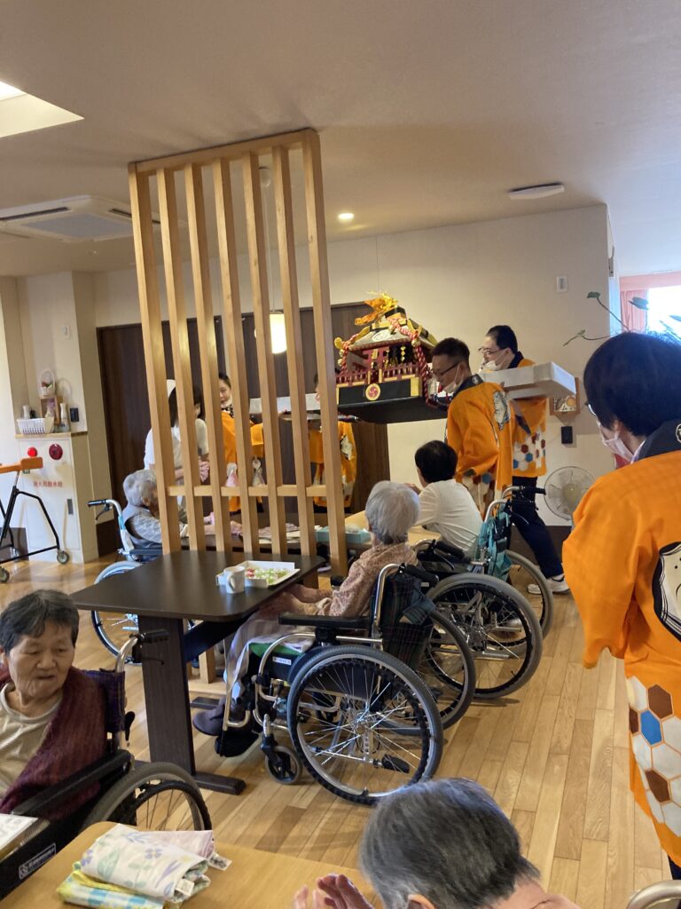 お祭りの季節となりました。今年も、高倉神社のおみこしや獅子が高寿園に来てくれました。威勢の良い掛け声が高寿園に響きわたる中、お年寄りも一生懸命見入っていました。施設内でも職員によるおみこしが練り歩き、お祭りムード一色の1日となりました。