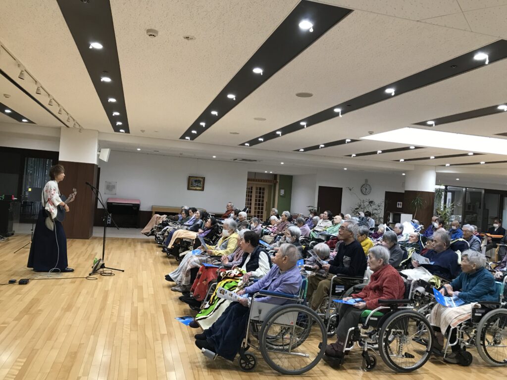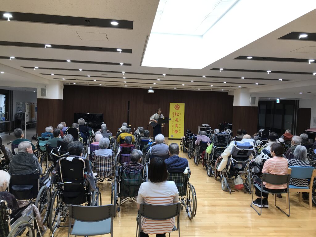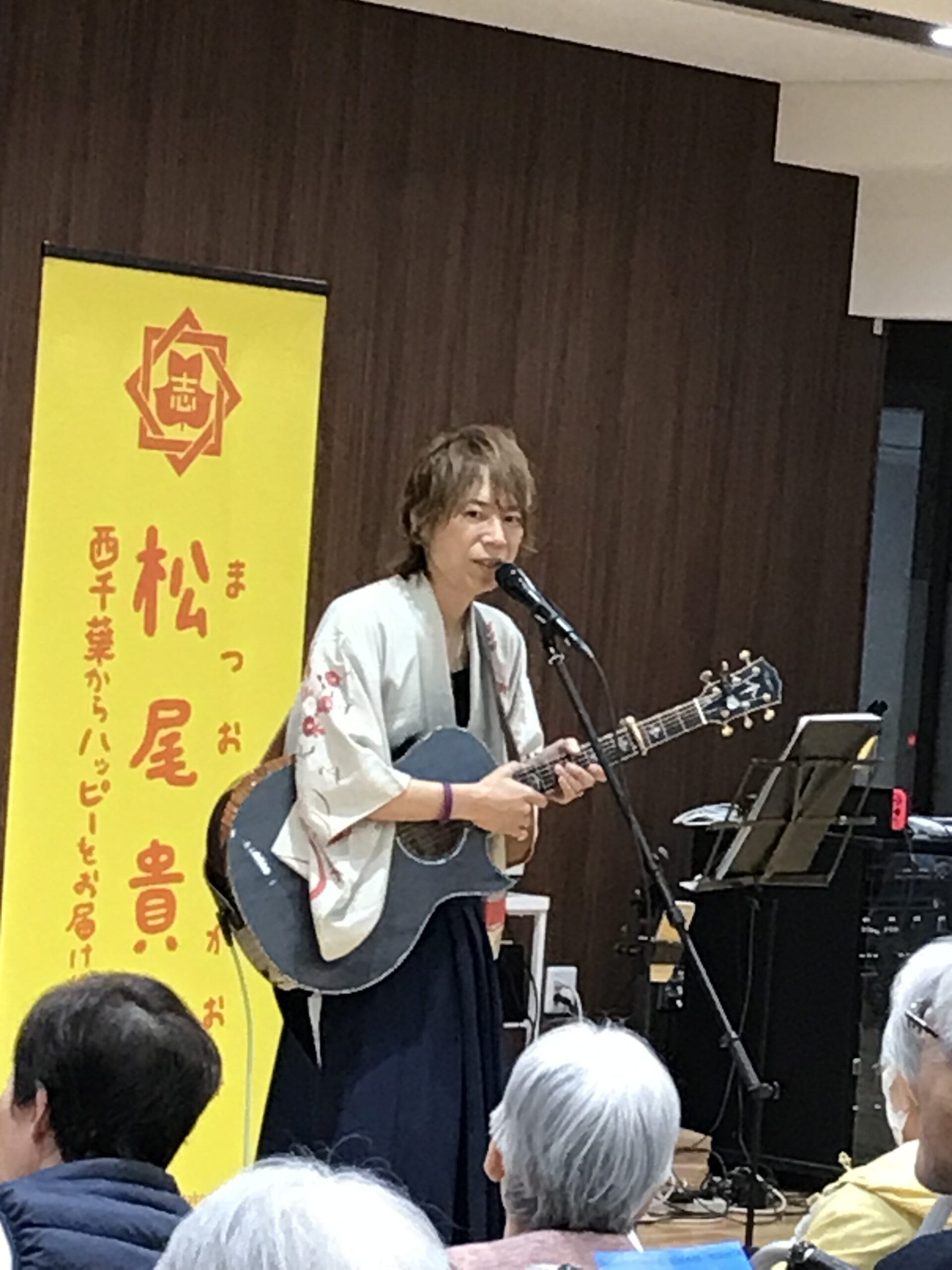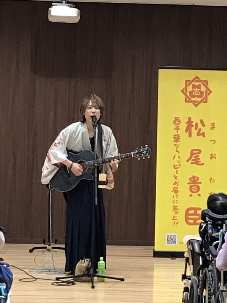 松尾貴臣さんが今年も高寿園に来てくれました。オリジナル曲やカバー曲の歌声に入居者の皆さんも聞き入っていました。プロの歌声はやっぱり違うなとの感想も聞かれました。