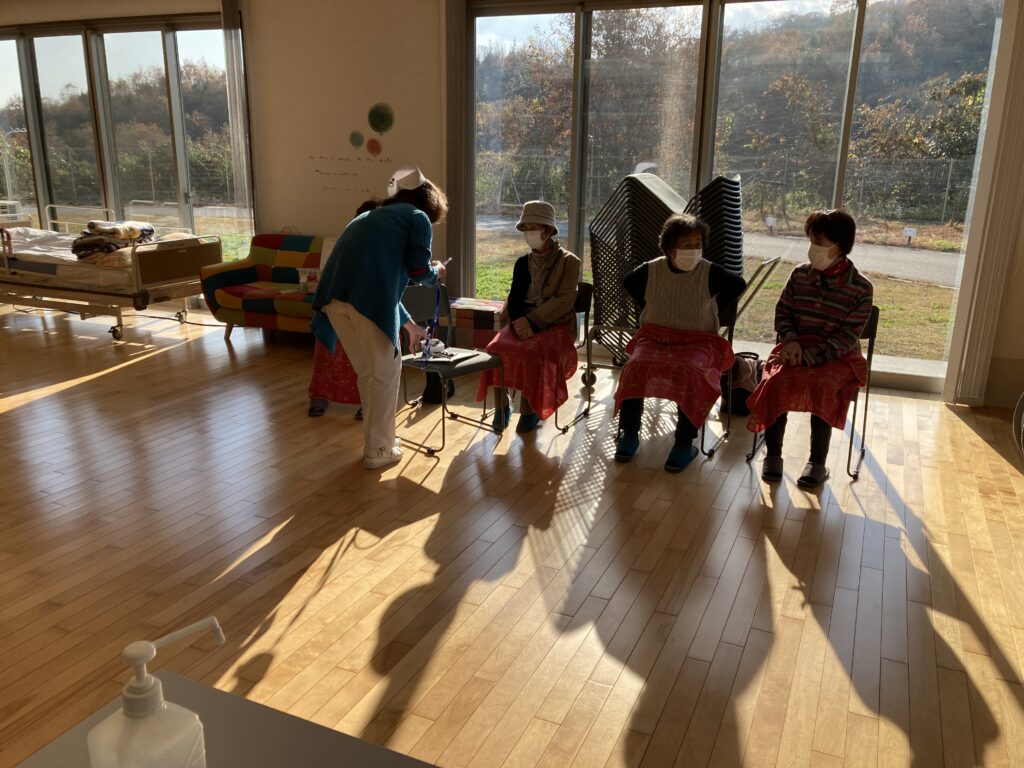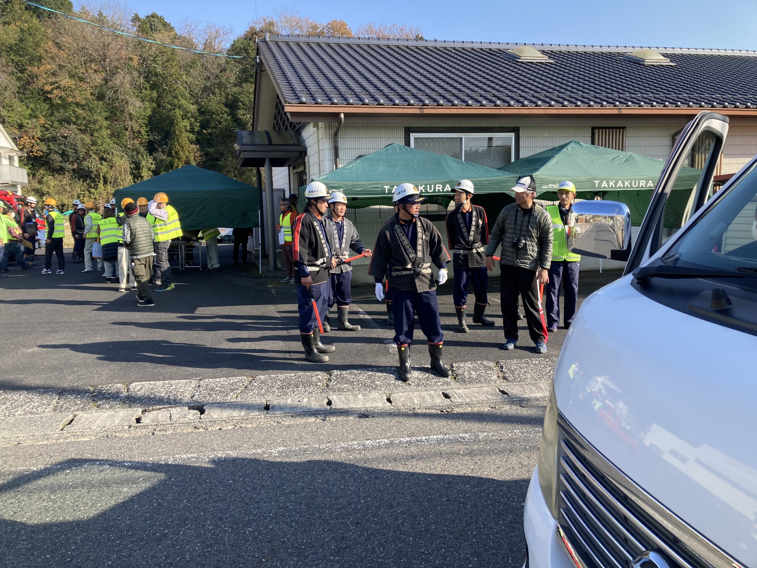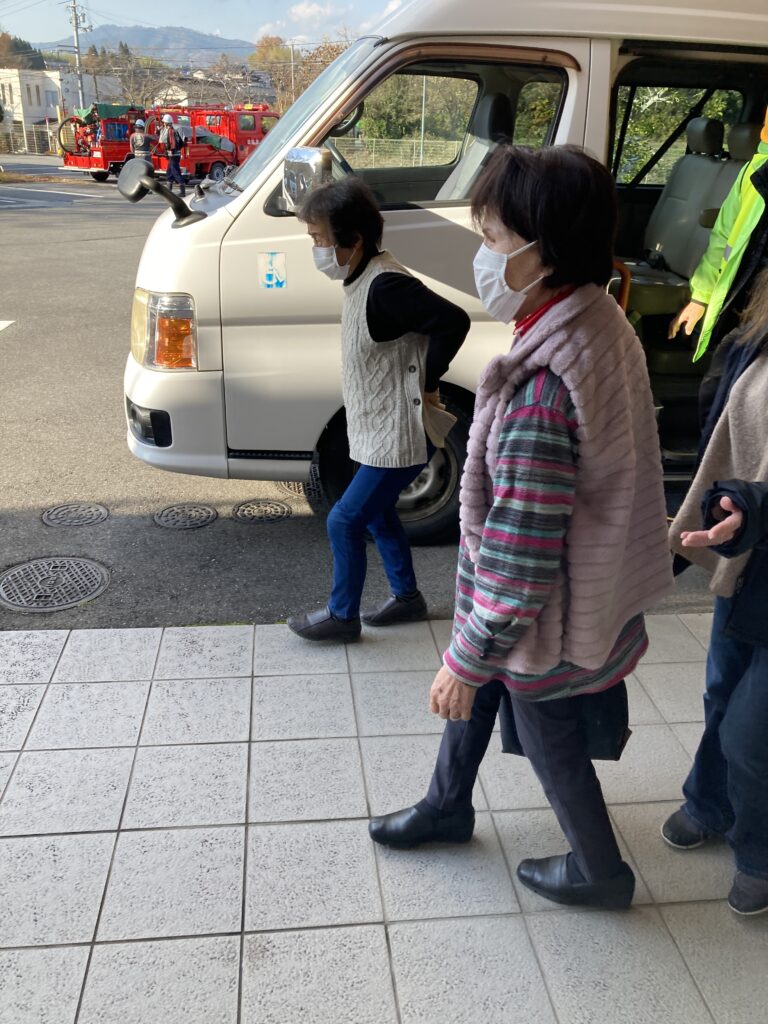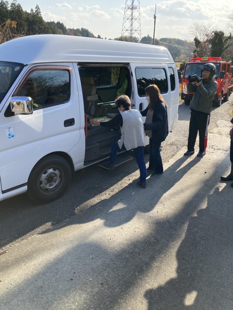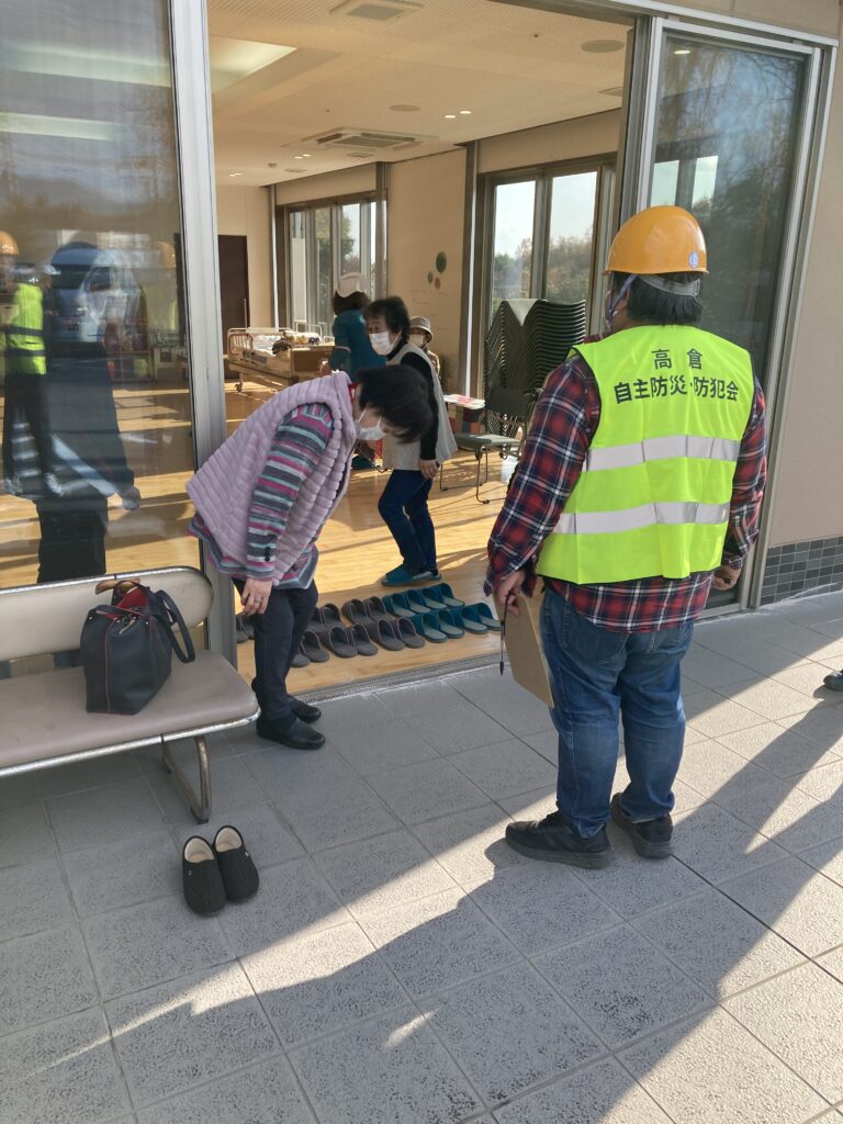 今年も高倉地区との合同防災訓練を行いました。今年は高倉地区内で被災した要援護者を地元防災会、消防団と連携し高寿園に避難するという訓練を行いました。要援護者宅に送迎車で迎えに行くにあたって地元の方が道案内をしてくれたのでスムーズに送迎することができました。また、この訓練で避難所になった際の準備物も確認でき有意義な訓練となりました。